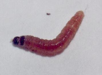 This Caterpillar was pink with a dark brown head and collar. It grew to a length of about 1 cm.