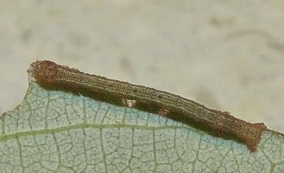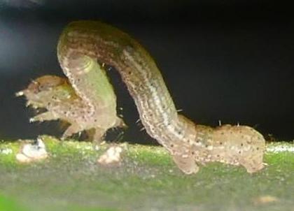 The Caterpillars of this species are initially greenish with a pale brown head and claspers. The caterpillars have reduced prolegs, so walk in a looper fashion.