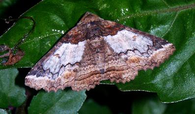 The adult moth is brown with a complex pattern of dark lines and patches, and often with some white areas.