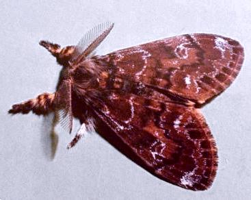 ![]() male showing feathery antennae. | ![]() female showing threadlike antennae |