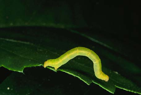 ![]() 5: Oenochroma vinaria, GEOMETRIDAE | ![]() 6: larva, probably Australian Budworm Helicoverpa punctigera NOCTUIDAE, length: about 4 cms. | ![]() 7: larva of undetermined GEOMETRIDAE, length: about 4.5 cms. | ![]() 8: larva of undetermined GEOMETRIDAE, length: about 4.5 cms. |