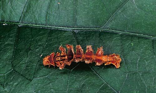 ![]() 1: Sawfly Larvae Symphyta, HYMENOPTERA, length: about 2 cms. | ![]() 2: larva of Urocoma baliolalis LYMANTRIINAE, length: about 2 cms. | ![]() 3: larva of perhaps: Melanodes anthracitaria, GEOMETRIDAE, length: about 4.5 cms. | ![]() 4: probably larva of Eucyclodes pieroides, GEOMETRIDAE, length: about 2 cms. |