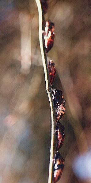 plant at Macquarie Marshes with resting adults of Belenois java, PIERIDAE. |
