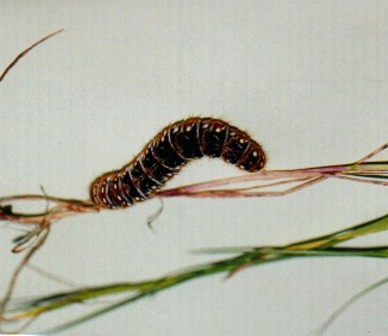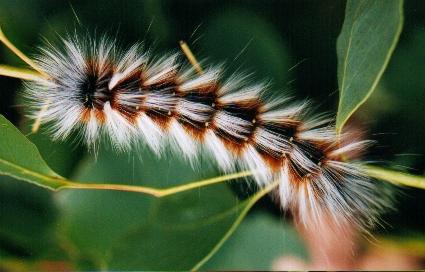 Caterpillar length about 6 cms. perhaps of Anthela varia ( ANTHELIDAE ) found on Blue Box ( Eucalyptus baueriana ) near the Werribee River at Exford, Victoria. |