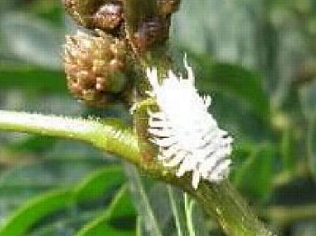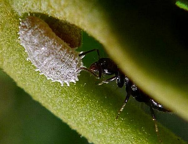 They grow to a length of about 1 cm. They are often attended by ants as they exude excess sugar syrup. The syrup is also deposited on the leaves, which then can become mouldy, reducing the light reaching the leaves The mould, the loss of nutrients, and the injection of poisons into the plant all damage infected plants.