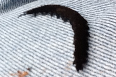 These are not Caterpillars, but are in a special phylum related to Arthropoda (Insects, Spiders, etc.). The commonest ones are black, but there are various species with other colours. They are soft and cylindrical, with over a dozen pairs of stubby feet. The head has a pair of floppy antaennae.
