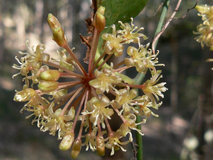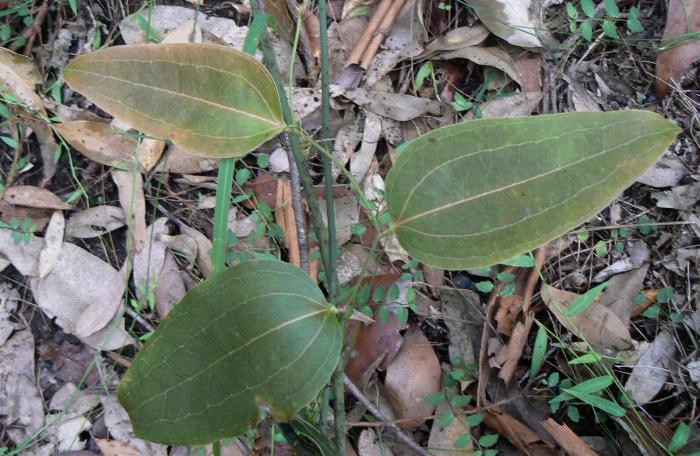 If something long, thin and vine-like clutches at your clothes, arms or legs on a bush walk and won’t easily release you, chances are Smilax australis has grabbed your attention. It is a very common, tough, wiry climber that scrambles through dry rain forests and nearby shady gullies in the Australian bush; growing in all states in a wide variety of habitats. It has long tough stems, up to 8m or so.