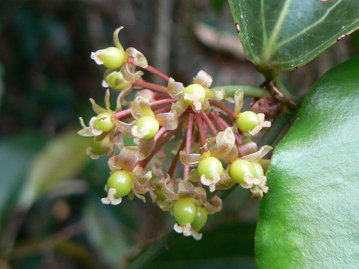 If the female flowers are fertilized a cluster of round green berries 5-8 mm across develops,