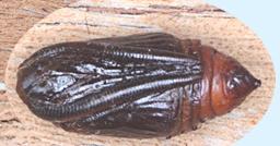 The pupa is brown and tubby.