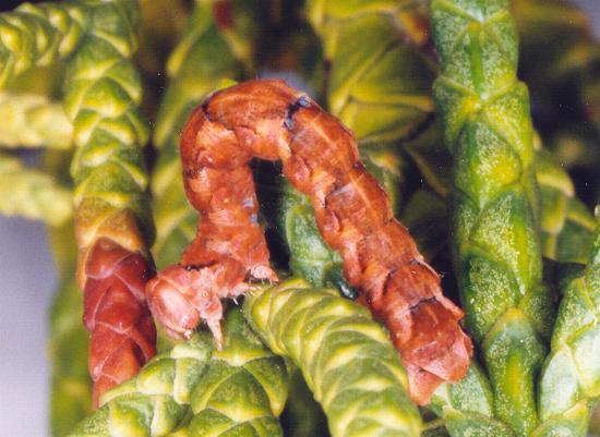 The Caterpillars of this species are reddish brown, with a skin apparently made of platelets. Each segment has three overlapping platelets: one on each side, and one on the back. These platelets resemble the overlapping leaf scales of its foodplant. The caterpillars feed on the dwindling population of :