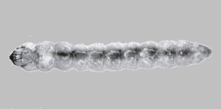 The Caterpillar of this species is grey, smooth, long, and thin, with a flattened head, and has a vague dark line along the back.