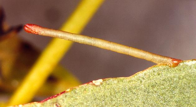 These caterpillars have a head shaped like it has a pair of stubby horns, but have an un-forked tail :