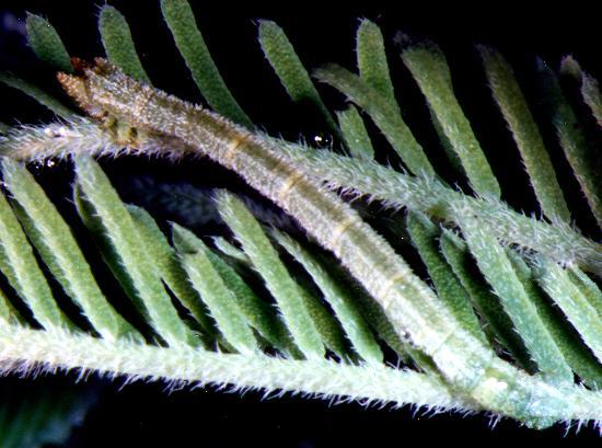This Caterpillar is thin and pale green, with the head end extended into two horn-like points with red tips. The caterpillar has been found feeding on