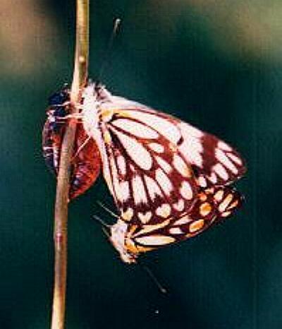plant at Macquarie Marshes with resting adults of Belenois java, PIERIDAE. |