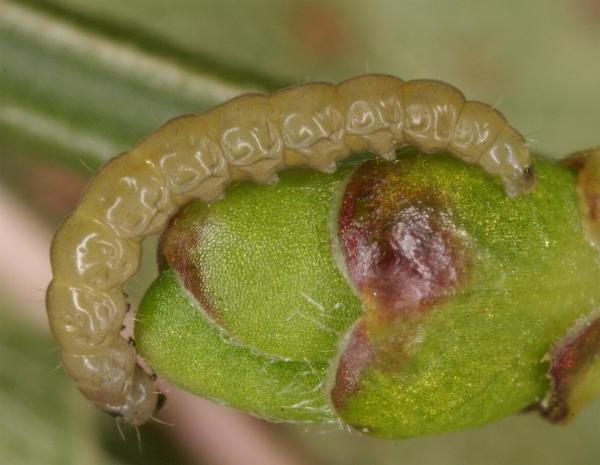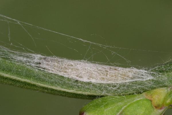 The caterpllar pupates in a sparse silk cocoon spun between the stems and leaves of its foodplant.