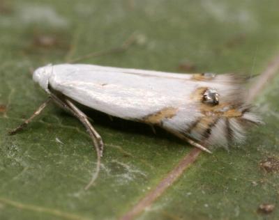 | Broom Twig Miner (one synonym : Tinea punctaurella) LYONETIIDAE, YPONOMEUTOIDEA | (donherbisonevans@yahoo.com) and Stella Crossley |