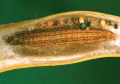 The caterpillars of this species are a minor agricultural pest, feeding in the seed heads of crops, including: