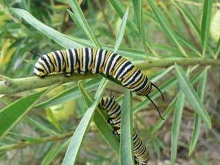 The larvae are beautiful and fascinating in their own right. Instead of a flower arrangement a branch of Gomphocarpus fruticosus, complete with caterpillars and pupa, make a very unusual living arrangement.