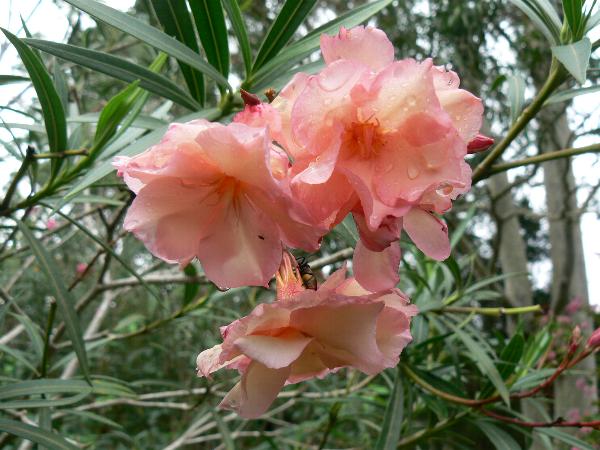 Oleanders prefer full sun but will tolerate some shade. Once established they need no extra watering, surviving through the toughest of droughts and the hottest of summers (it can even cope with reflected heat from buildings), as well as surviving through cold winters and the occasional frost. That said it would not be our first choice in a place with long, cold winters as it does best in a temperate to sub-tropical climate. It doesn’t like to grow in soil which never dries out either, such as soggy, boggy spots, but that shouldn’t be a problem in most Aussie gardens.
